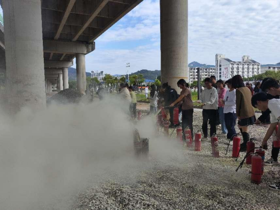 演練開始前安全工作處支部成員為2023級新生演示干粉滅火器的使用方法、撲滅初火的要領并進行了消防安全知識培訓,并著重強調(diào)了使用滅火器的注意事項。隨后學生在安全工作處支部成員的指導下分組、分批次進行了油盆滅火實戰(zhàn)演練。