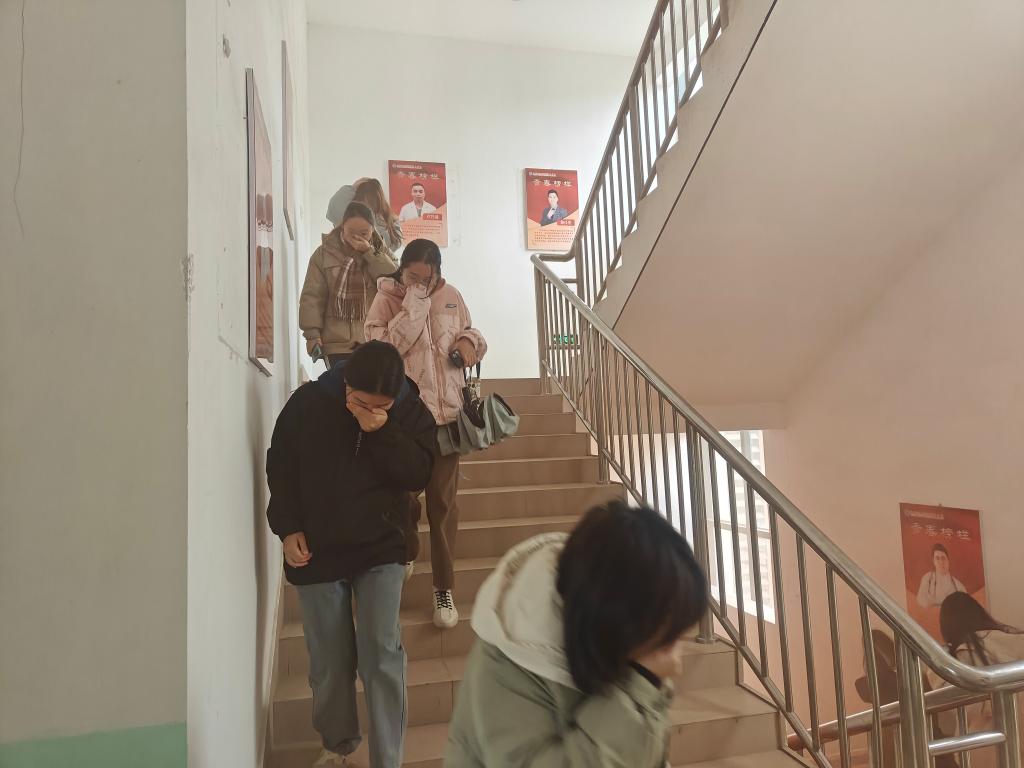 第二部分,應(yīng)急逃生演練(消防、地震)。演練開啟前,安全工作處林澤文老師首先強(qiáng)調(diào)災(zāi)害來臨面前以人為本原則,隨后普及干粉滅火器使用要點。同時為參演同學(xué)介紹演練程序、疏散信號、疏散路線、疏散順序等注意事項,并強(qiáng)調(diào)在疏散過程中切勿擁擠、推搡導(dǎo)致踩踏事件發(fā)生。演練工作組接到演練指令后,模擬燃放煙霧,迅速開啟實訓(xùn)(驗)室的安全出口大門,組織學(xué)生依次從實訓(xùn)(驗)室撤出,按照指定路線,分別有序從樓梯通道內(nèi)側(cè)撤離,彎腰、捂口鼻、無人喧嘩、迅速有序地撤出實訓(xùn)(驗)室,到空曠位置集合并清點人數(shù)。