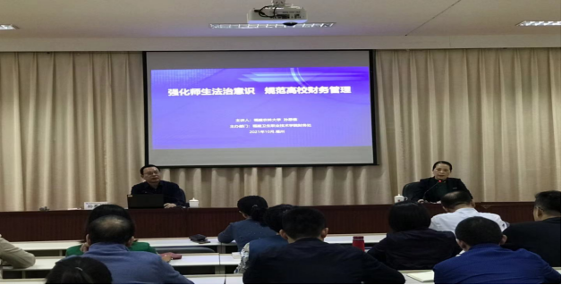 為強化師生財經(jīng)法治意識,規(guī)范各類財經(jīng)行為,提升學校財務管理水平,10月28日下午,我校邀請了福建農(nóng)林大學(金山學院)黨委常務副書記、福建教育會計協(xié)會會長、福建省財政廳會計咨詢專家孫思惟教授開展了《強化師生法治意識 規(guī)范高校財務管理》專題講座。校領導、部門中層干部及預算管理員參加講座,講座由財務處處長陳筱瑜主持。