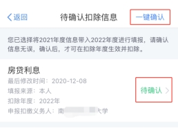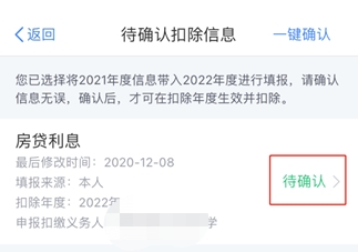 ⑴以修改“房貸利息”為例,在待確認(rèn)扣除信息頁面,點擊“待確認(rèn)”,核對信息。