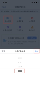⑵選“子女教育”-選擇扣除年度“2022”-確認(rèn);