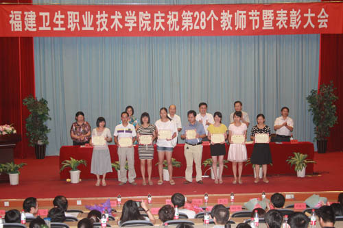 下午,慶祝第28個(gè)教師節(jié)表彰大會召開,由廖偉堅(jiān)副院長主持,陳雄副書記宣讀了學(xué)院黨委《福建衛(wèi)生職業(yè)技術(shù)學(xué)院關(guān)于表彰第二屆師德標(biāo)兵的決定》、《關(guān)于頒發(fā)長期從事教育工作的教師與教育工作者榮譽(yù)證書的通知》以及《受院級以上表彰的先進(jìn)集體與個(gè)人名單》,李紅副院長宣讀了《福建衛(wèi)生職業(yè)技術(shù)學(xué)院關(guān)于表彰2012年青年教師教學(xué)競賽獲獎集體與個(gè)人的決定》,院領(lǐng)導(dǎo)為獲得榮譽(yù)和表彰的集體和個(gè)人代表頒發(fā)了榮譽(yù)證書。