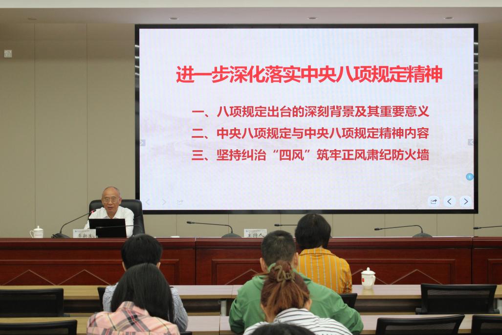 講座中,李新生從八項(xiàng)規(guī)定出臺(tái)的深刻背景及其重要意義、中央八項(xiàng)規(guī)定與中央八項(xiàng)規(guī)定精神內(nèi)容、堅(jiān)持糾治“四風(fēng)”筑牢正風(fēng)肅紀(jì)防火墻等三個(gè)方面系統(tǒng)闡述了中央八項(xiàng)規(guī)定精神的豐富內(nèi)涵與實(shí)踐要求,為進(jìn)一步深入貫徹中央八項(xiàng)規(guī)定精神學(xué)習(xí)教育提供了科學(xué)指導(dǎo)。