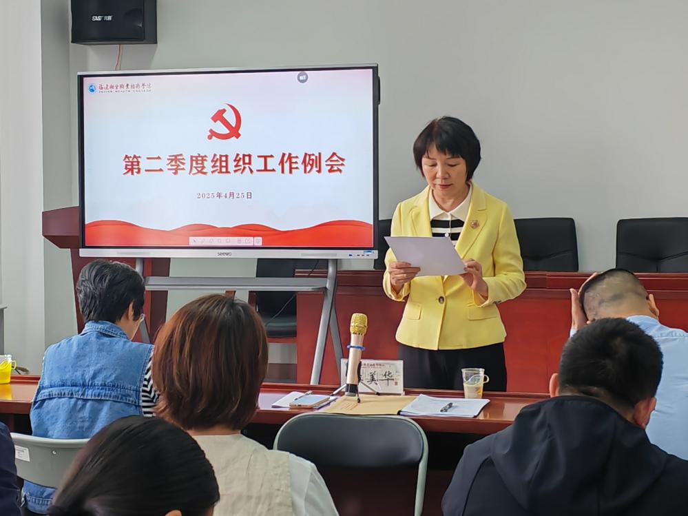 為聚焦黨支部建設(shè)重點任務(wù),4月25日,學(xué)校召開第二季度組織工作例會,黨委副書記李美華,各二級黨組織書記、副書記,專職組織員,學(xué)生黨支部書記,組織統(tǒng)戰(zhàn)部工作人員等三十余人參加會議。會議由組織統(tǒng)戰(zhàn)部副部長黃小芳主持。
