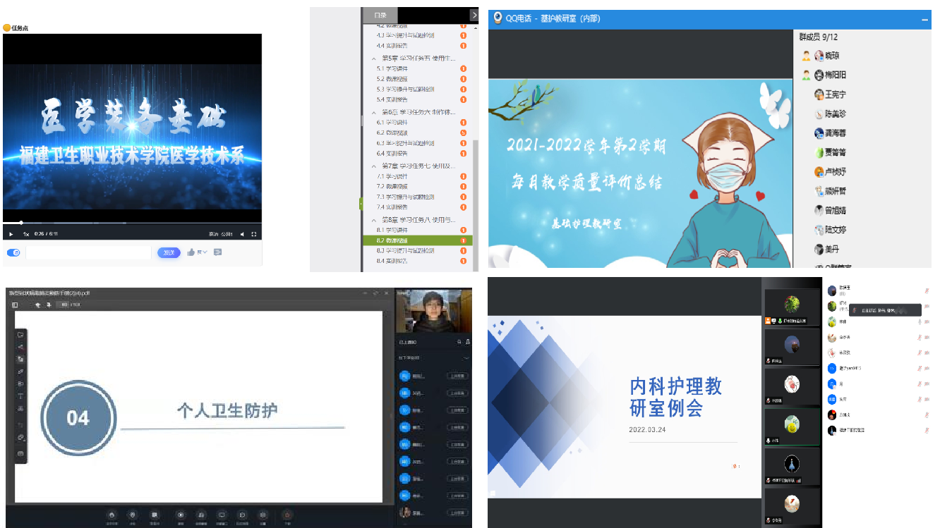 在線上教學(xué)過程中,“雙帶頭人”教師黨支部書記牽頭各教研室,積極探索最優(yōu)教學(xué)模式,集體線上備課,共同研討教學(xué)內(nèi)容和教學(xué)進度,研究線上實習(xí)模式和適用平臺,開展實習(xí)生線上實習(xí)準(zhǔn)備工作。護理學(xué)院兩位“雙帶頭人”支部書記帶頭參與線上教學(xué)督導(dǎo),課后就各課程的教學(xué)情況做出點評,并與任課教師交流經(jīng)驗、指導(dǎo)教學(xué)工作,著力提升教學(xué)品質(zhì);因疫情無法開展線下實訓(xùn)課,黨員教師們積極引導(dǎo)護理學(xué)院學(xué)生在宿舍就地取材,利用玩偶、枕頭等進行模擬實訓(xùn),做到理論實踐相結(jié)合。醫(yī)學(xué)技術(shù)系第二黨支部在支部書記鐘偉雄的帶動下,積極推進專業(yè)建設(shè),開展智能醫(yī)療裝備技術(shù)專業(yè)和醫(yī)用電子儀器技術(shù)專業(yè)的線上人才培養(yǎng)方案制定會,同時在學(xué)習(xí)通平臺開設(shè)《醫(yī)學(xué)裝備基礎(chǔ)》線上課程,錄制教學(xué)實訓(xùn)視頻,利用虛擬仿真手段開展線上理論授課和實訓(xùn)教學(xué)。