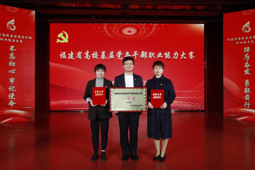12月13日,首屆全省高?;鶎狱h務(wù)干部職業(yè)能力大賽在福州大學(xué)落下帷幕。經(jīng)過(guò)激烈角逐,由我校劉丹丹、吳曉欣、黃玲云3名黨務(wù)干部組建的團(tuán)隊(duì)榮獲一等獎(jiǎng)。