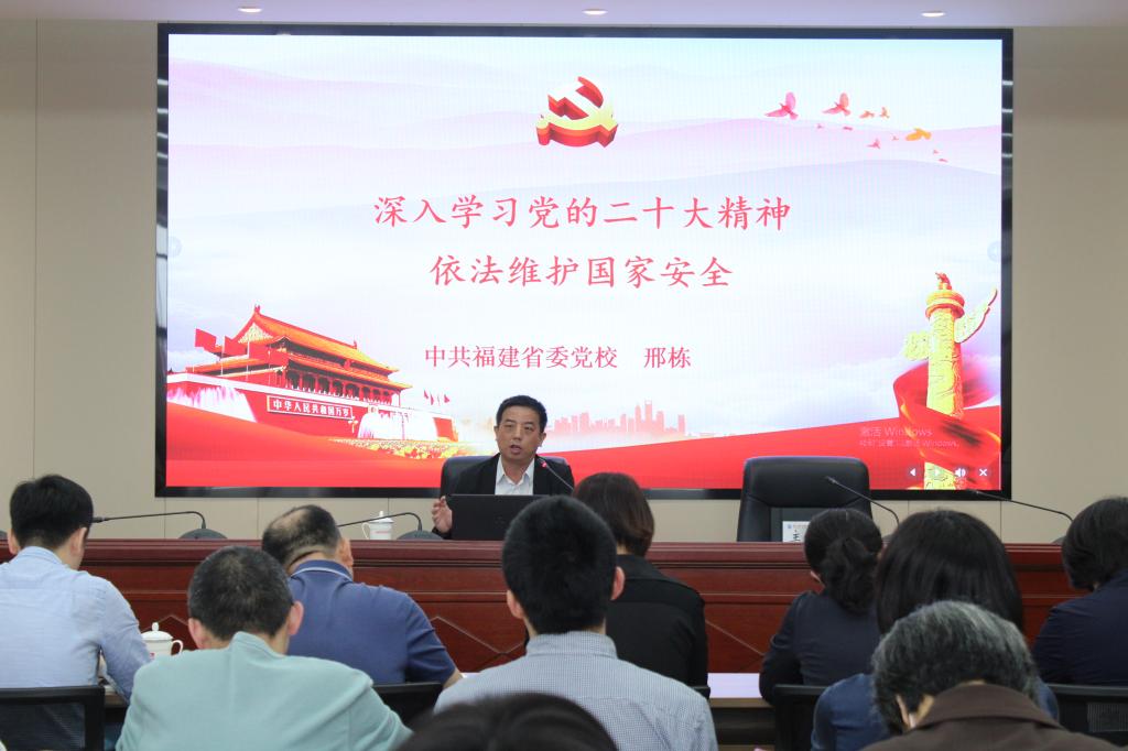 為深入學(xué)習(xí)宣傳貫徹黨的二十大精神,4月20日下午,我校舉行黨的二十大精神專題培訓(xùn)第五次集中學(xué)習(xí),邀請(qǐng)福建省委黨校法學(xué)教研部邢棟博士作輔導(dǎo)報(bào)告。校領(lǐng)導(dǎo)、中層干部、專職組織員和師生黨支部書(shū)記等80余人參加培訓(xùn)。