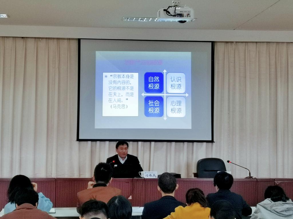 為進一步深入學習黨的十九屆六中全會精神,學習貫徹《中國共產黨統(tǒng)一戰(zhàn)線工作條例》,加強黨的宗教政策教育,更好地開展我校的民族宗教工作,11月19日上午,我校邀請省委黨校閆偉杰副教授開展《堅持馬克思主義宗教觀 全面貫徹落實黨的宗教政策》主題講座。各黨總支(直屬黨支部)書記、副書記、專職組織員、支部書記、統(tǒng)戰(zhàn)委員、輔導員等80余人參加學習。本次講座也是2021年支部書記系列培訓項目之一。