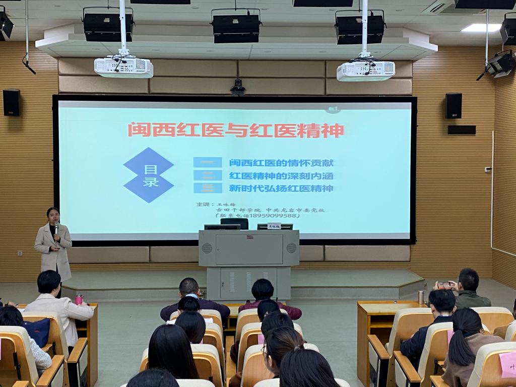 12月7日,我校邀請中共龍巖市委黨校(古田干部學院)王詠梅副教授到校開展《閩西紅醫(yī)與紅醫(yī)精神》主題講座。護理學院、醫(yī)學系黨員教師及積極分子代表、組織統戰(zhàn)部黨支部等60余人參與學習。