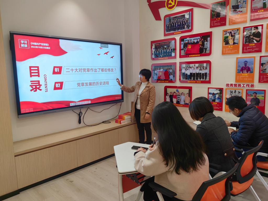 為深入學習宣傳貫徹黨的二十大精神,切實把黨員的思想統(tǒng)一到黨的二十大精神上來,12月1日,組織統(tǒng)戰(zhàn)部黨支部書記謝濤以專題黨課的形式,帶領支部黨員共同學習《中國共產(chǎn)黨章程(修正案)》。