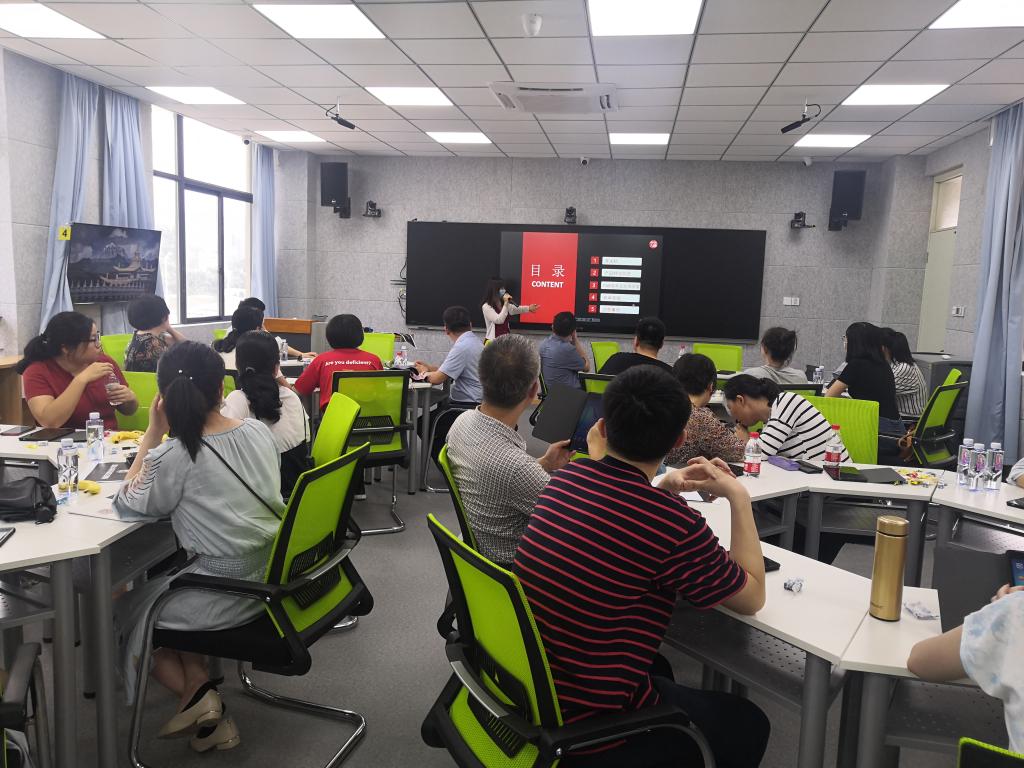 的需要,積極做好教師個人知識管理,專家引領(lǐng)、同伴互助,提高教科研能力,并且全面提升學(xué)校的軟硬件的信息化環(huán)境,實現(xiàn)智能化統(tǒng)一管理,優(yōu)化管理人員的運維保障,健康管理系開展了智慧教室的建設(shè)規(guī)劃。2020年6月23日,健康管理系全體教師在實訓(xùn)樓五樓智慧教室集中,開展智慧教師建成之后的首次全體培訓(xùn)工作。培訓(xùn)主要由首先北京文香公司的人員進(jìn)行。
