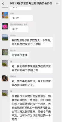 專家聽取了徐軼彥老師對目前醫(yī)學營養(yǎng)專業(yè)人才培養(yǎng)方案存在問題的匯報,就修改完善醫(yī)學營養(yǎng)專業(yè)人才培養(yǎng)方案為主題的研討展開了熱烈的討論,各位專家及老師提出了很多寶貴的意見及建議,并達成共識。