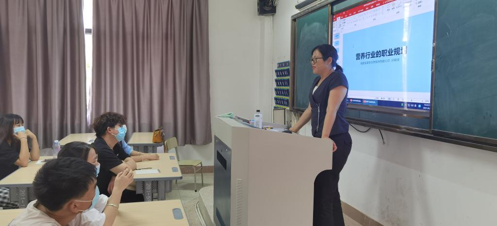 金草堂的孫總則從企業(yè)用人的角度,給大家進(jìn)行了營養(yǎng)行業(yè)的職業(yè)規(guī)劃給出了懇切的建議。孫總的分享了自己的人生經(jīng)歷、用切實(shí)的案例教會(huì)大家如何平衡興趣和專業(yè),并提到了企業(yè)最看重員工的能力及品質(zhì)。此外,孫總還在如何利用課余、寒暑假時(shí)間去挖掘自己的能力潛力等方面給了極具操作空間的建議。最后,孫總鼓勵(lì)同學(xué)們能在今后的就業(yè)中能夠不局限于自己所想,開拓創(chuàng)新,面向社會(huì)更好的宣傳創(chuàng)新,把營養(yǎng)推進(jìn)千家萬戶!