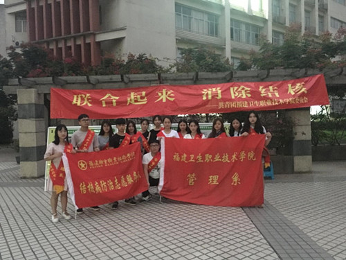 為促進(jìn)和提高大學(xué)生結(jié)核病防治知識普及率,優(yōu)化結(jié)核病控制支持環(huán)境,2017年10月19日,由共青團(tuán)福建衛(wèi)生職業(yè)技術(shù)學(xué)院委員會主辦,管理系團(tuán)總支和院紅十字急救培訓(xùn)部共同承辦的以結(jié)核病防治知識為宣傳重點(diǎn)的“聯(lián)合起來,消除結(jié)核”交流宣傳活動在福建藝術(shù)職業(yè)學(xué)院正式舉行。