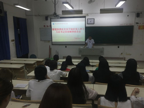 為迎接和學(xué)習(xí)宣傳貫徹黨的十九大精神,充分的學(xué)習(xí)到深刻領(lǐng)會(huì)習(xí)近平總書(shū)記回信的精神實(shí)質(zhì)和豐富內(nèi)涵,堅(jiān)定理想信念,錘煉意志品質(zhì)。2017年9月12日,管理系團(tuán)總支書(shū)記邱麟老師組織總支委員會(huì)議,組織學(xué)習(xí)了習(xí)近平總書(shū)記給第三屆中國(guó)“互聯(lián)網(wǎng)+”大學(xué)生創(chuàng)新創(chuàng)業(yè)大賽“青年紅色筑夢(mèng)之旅”的大學(xué)生的回信,通知安排管理系團(tuán)總支四位學(xué)生委員走進(jìn)2016級(jí)四個(gè)班級(jí)進(jìn)行深入學(xué)習(xí)宣傳貫徹習(xí)近平總書(shū)記的回信精神。