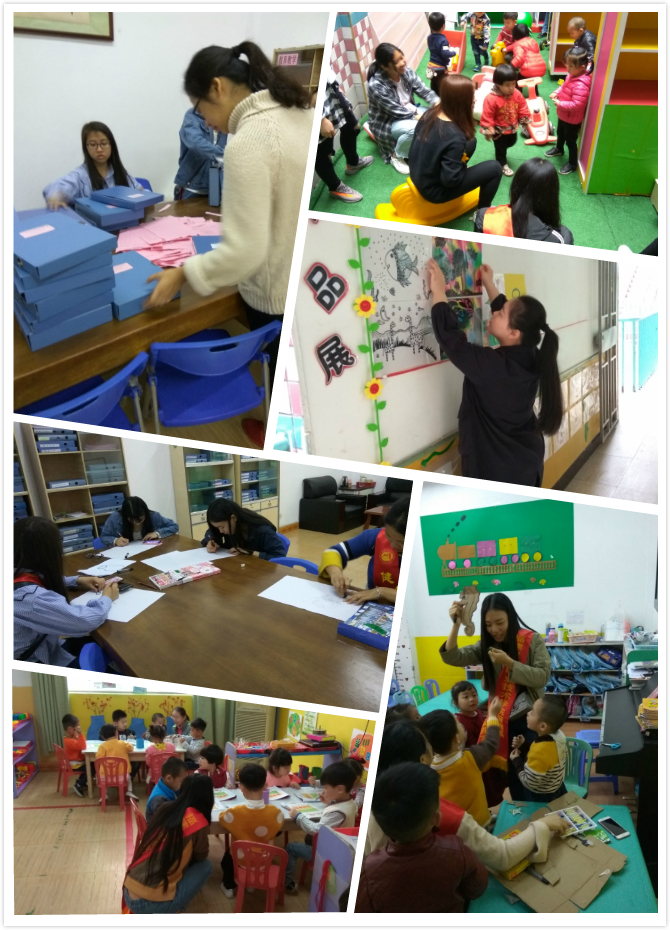 到達小森林幼兒園后,志愿者們在園長的帶領(lǐng)下展開義工活動。29位志愿者兩兩一組分別去到不同的班級協(xié)助老師們上課。有的陪小朋友們畫畫,有的教小朋友折紙,有的幫小朋友剪紙貼畫,也有的在小朋友休息時間陪玩游戲;小朋友玩的不亦樂乎,志愿者們也沉浸在童年的歡樂中。游戲環(huán)節(jié)結(jié)束后,志愿者為小朋友分發(fā)午餐并打掃了園內(nèi)衛(wèi)生。