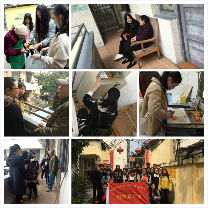 活動(dòng)期間同學(xué)們不怕苦不怕累,幫助工作人員對(duì)公寓內(nèi)的地板、長(zhǎng)椅、窗戶、欄桿等公共設(shè)施進(jìn)行清掃,讓東升公寓有個(gè)整潔舒適的環(huán)境。同學(xué)們還與老人談心、拉家常、講笑話逗老人開心,協(xié)助工作人員做午餐,做一些力所能及的事情讓老人們感受到兒孫繞膝般的溫暖和喜悅。最后,同學(xué)們將帶去的水果、面包分發(fā)給老人。在同學(xué)們的陪伴下,老人們露出了開心地笑容,興致勃勃講起他們年輕時(shí)的趣事。笑聲頓時(shí)打破了以往的寧?kù)o,養(yǎng)老院里充滿了歡聲笑語(yǔ)。