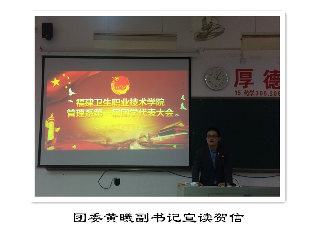 大會(huì)在莊嚴(yán)雄壯的《國(guó)歌》聲中拉開序幕。黃曦副書記帶來賀信,他在賀辭中祝賀我系第一屆團(tuán)學(xué)代表大會(huì)的順利召開的同時(shí),也對(duì)我系新一屆團(tuán)學(xué)工作,提出了新要求,并預(yù)祝我系團(tuán)學(xué)在日后的工作中能夠翻開嶄新的一頁,更上一層樓。