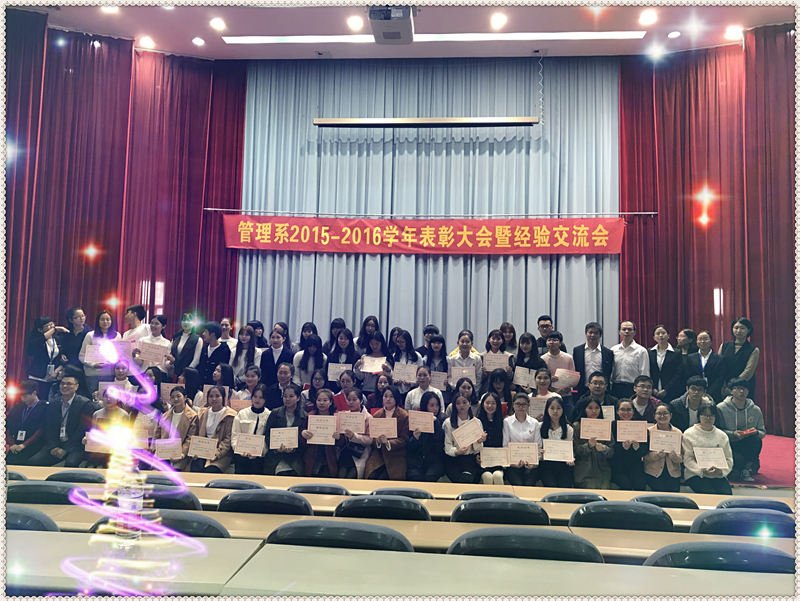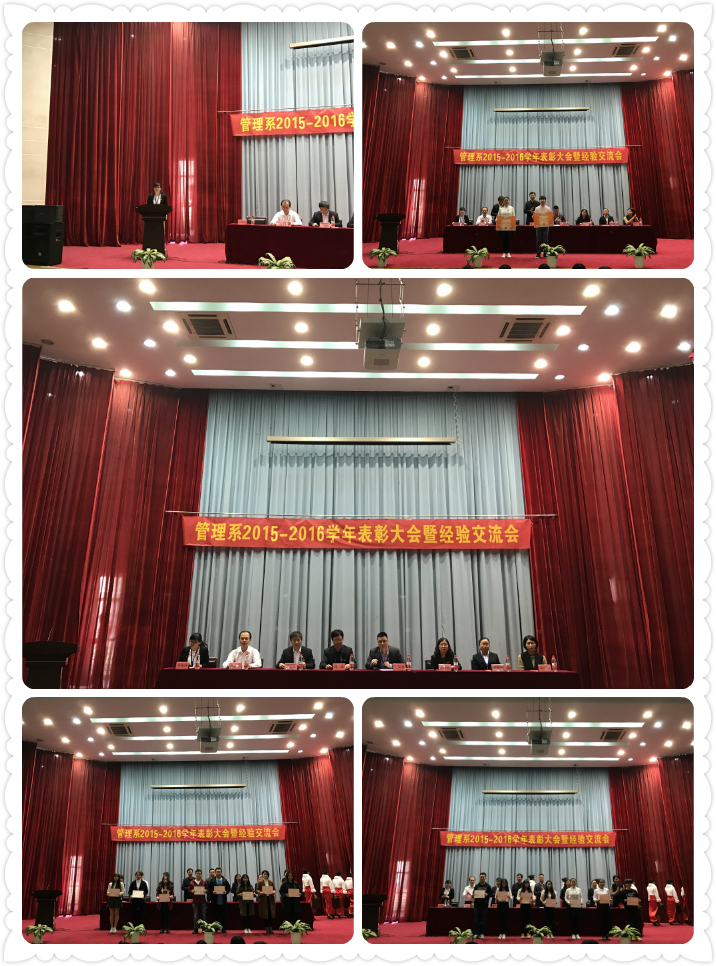 大會(huì)在莊嚴(yán)的國(guó)歌中拉開(kāi)帷幕。首先,由管理系團(tuán)總支副書(shū)記馮瑞華宣讀了“關(guān)于管理系表彰2015-2016學(xué)年先進(jìn)集體和先進(jìn)個(gè)人的決定”,希望受表彰的同學(xué)珍惜榮譽(yù),戒驕戒躁。在頒獎(jiǎng)儀式上,領(lǐng)導(dǎo)老師為受表彰的先進(jìn)集體和個(gè)人頒發(fā)了榮譽(yù)證書(shū)并希望同學(xué)們不斷進(jìn)取,努力成為一名優(yōu)秀的醫(yī)藥衛(wèi)生人才。一等獎(jiǎng)學(xué)金獲得者15美容301班劉芹,優(yōu)秀學(xué)生干部及二等獎(jiǎng)學(xué)金獲得者15營(yíng)養(yǎng)301班羅鴻,三好生及特等獎(jiǎng)學(xué)金獲得者15體保301班郭春燕分別作為學(xué)生代表,分享獲獎(jiǎng)感言和個(gè)人學(xué)習(xí)經(jīng)驗(yàn)。預(yù)防醫(yī)學(xué)組李丹老師作為教師代表分享作為一名人民教師的驕傲和自豪,表示獲得表彰不僅是給同學(xué)們的一種肯定和鼓勵(lì),更是對(duì)教師的一種認(rèn)可和鞭策。學(xué)生工作處葉海處長(zhǎng)號(hào)召同學(xué)們響應(yīng)健康中國(guó)發(fā)展趨勢(shì),明確學(xué)習(xí)目標(biāo),努力提升自身綜合素質(zhì);并期望同學(xué)們做一個(gè)積極向上的人,勤奮好學(xué)的人,全面發(fā)展的人。管理系莊海林副主任對(duì)同學(xué)們?nèi)〉玫膬?yōu)異成績(jī)表示祝賀,同時(shí)希望同學(xué)們?cè)诮】抵袊?guó)的創(chuàng)新創(chuàng)業(yè)浪潮中把握機(jī)遇迎接挑戰(zhàn),在步入社會(huì)之前不僅先學(xué)會(huì)學(xué)習(xí),更要學(xué)會(huì)做人,這樣才能為將來(lái)就業(yè)做好堅(jiān)實(shí)的基礎(chǔ)保障。