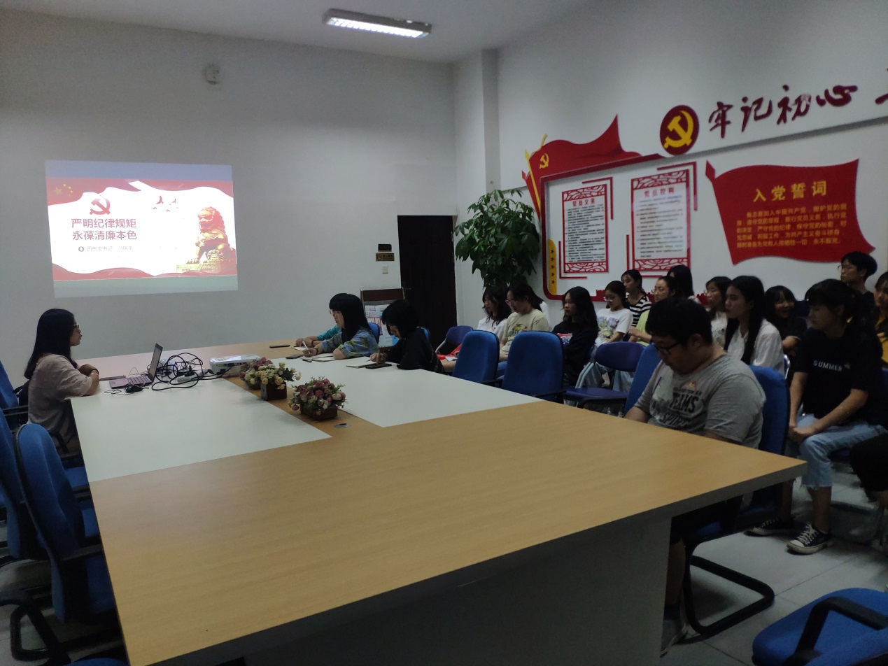 此外,我系團(tuán)總支書記馮瑞華老師于9月23日下午,以“嚴(yán)明紀(jì)律規(guī)矩,永葆清廉本色”為主題,將“廉政”與大學(xué)生生活緊密結(jié)合,為我系團(tuán)學(xué)干部上了一堂深入淺出的廉學(xué)課。團(tuán)總支書記馮瑞華老師結(jié)合自身理解及經(jīng)歷,剖析了廉政的意義及對當(dāng)代大學(xué)生在學(xué)習(xí)、工作、生活上的啟示,講解平易近人,幽默風(fēng)趣。同時,通過觀看《人民的名義》影視片段,針對團(tuán)學(xué)干部入職以來的工作實際情況,既是給大家作一次廉潔提醒,也是一次關(guān)愛談心,既是警示教育的過程,也是學(xué)習(xí)勉勵的過程,借此增強(qiáng)各團(tuán)學(xué)干部對廉潔知識的了解和對黨規(guī)黨紀(jì)的敬畏,讓我系團(tuán)學(xué)干部在團(tuán)學(xué)工作進(jìn)行時牢固樹立廉潔從事理念,培養(yǎng)優(yōu)良工作作風(fēng)養(yǎng)成。