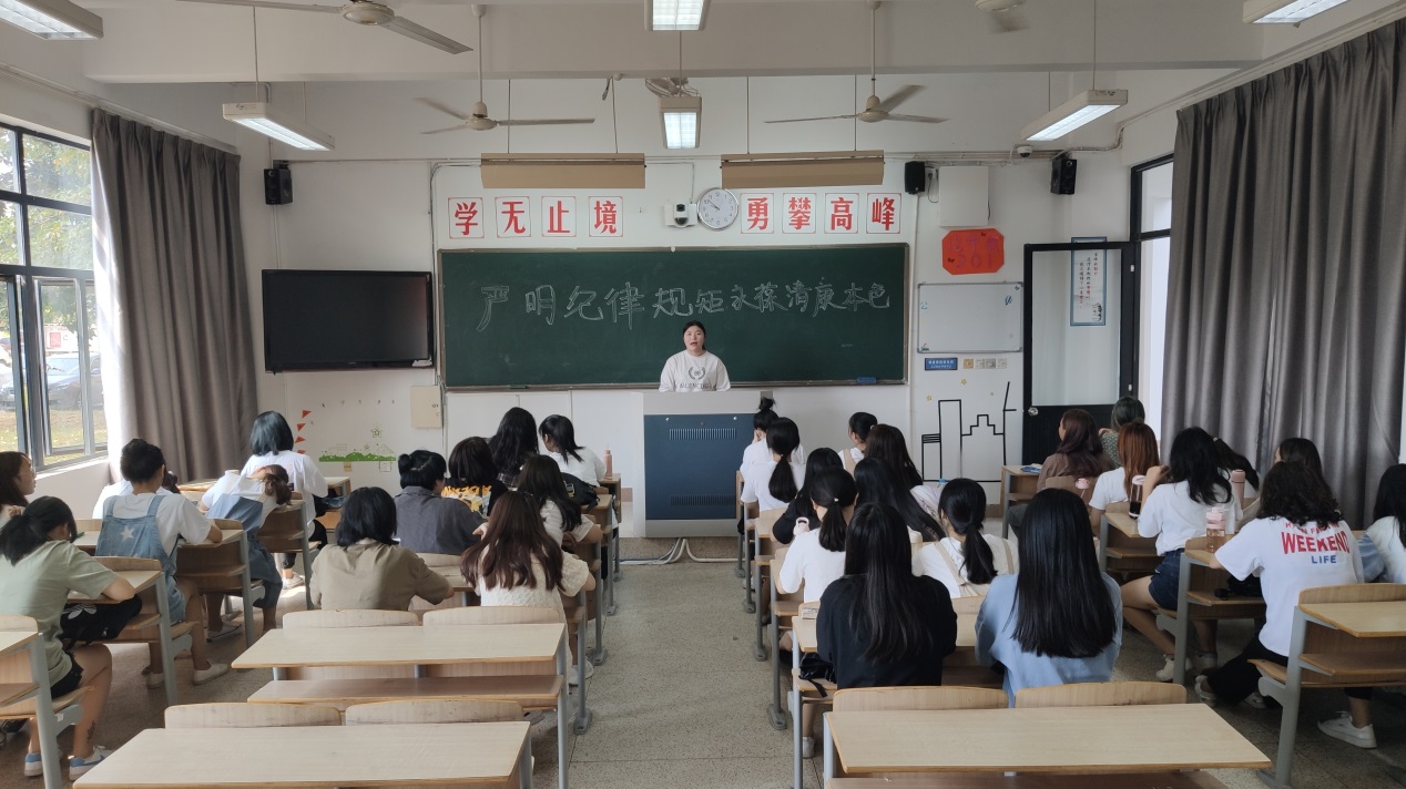 同時,為激發(fā)同學(xué)們成才報國的責(zé)任感與使命感,加強(qiáng)廉潔自律意識和思想道德修養(yǎng),各班團(tuán)支部積極響應(yīng)號召,于9月22日開展“嚴(yán)明紀(jì)律規(guī)矩,永葆清廉本色”主題團(tuán)日活動。同學(xué)們根據(jù)搜集的以廉潔文化為主題的課外閱讀材料為輔,展開“我身邊的廉潔故事”的故事分享會,各團(tuán)支部成員針對事例從正反兩面剖析展開激烈討論,從而更加深入學(xué)習(xí)貫徹廉政建設(shè)相關(guān)法律、法規(guī),更能直觀判斷及表達(dá)有關(guān)廉潔教育之感受、見解和主張。