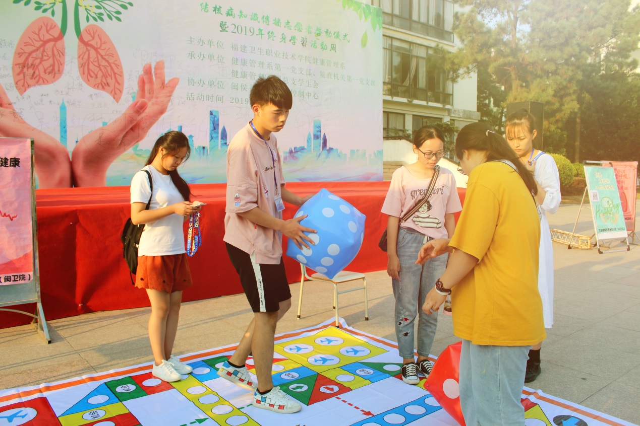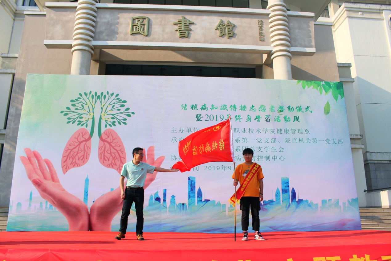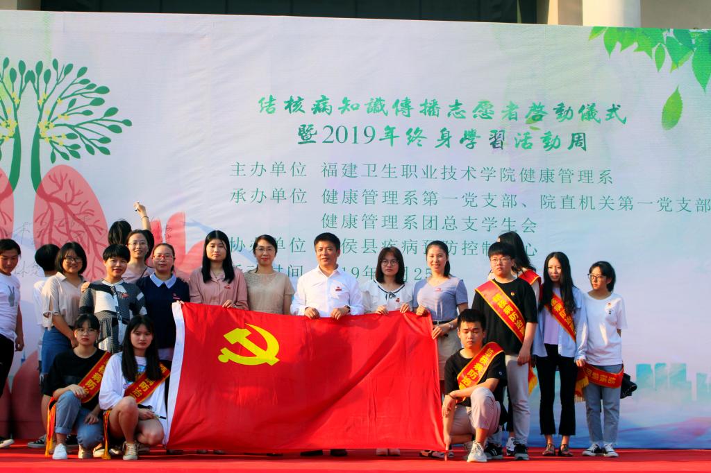 2019年9月25日,由健康管理系主辦,管理系第一黨支部、院直機關第一黨支部、健康管理系團總支承辦的“志愿者結核病防治知識傳播啟動儀式暨2019年終身學習活動周”在福建衛(wèi)生職業(yè)技術學院圖書館廣場舉行。此次活動是根據(jù)福建省終身教育促進委員會關于開展2019年“9?28終身教育活動日”暨全民終身學習活動周的通知精神并響應福建省衛(wèi)生計生委推動結核病防治知識傳播活動的號召,在學校組建結核病防治宣傳活動志愿團隊,發(fā)揮學生專業(yè)技能,推進健康中國建設,大力提高國民素質(zhì),并提高學生為人群健康服務的意識和決心。活動得到了閩侯縣CDC的大力支持,閩侯縣疾控中心江仁銜主任、福建省疾病預防控制中心黃智忠副主任醫(yī)師、院團委黃曦書記、健康管理系黨政負責人等參加活動。