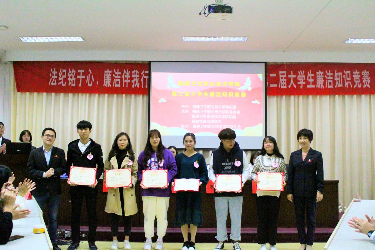 為深入弘揚廉潔文化,普及廉潔知識,永葆廉潔自律之心,揚青年正氣,樹廉潔新風(fēng)。在12月9日“國際反腐敗日”來臨之際,由學(xué)院紀委、團委主辦、健康管理系團總支承辦的第二屆大學(xué)生廉潔知識競賽于11月28日下午6:30在行政樓六樓會議室舉行。比賽特邀學(xué)院紀委副書記、紀檢監(jiān)察室主任程劍芬老師、院團委書記黃曦老師、紀檢監(jiān)察室楊金城老師擔(dān)任評委及指導(dǎo)。蒞臨活動現(xiàn)場的還有:護理系團總支書記李寶珠老師、團總支副書記林飛準老師、團總支副書記張龍老師、藥學(xué)系團總支副書記胡丹老師、醫(yī)學(xué)技術(shù)系團總支書記曾慶才老師、臨床醫(yī)學(xué)系團總支書記陳清清老師、健康管理系團總支書記馮瑞華老師、健康管理系團總支副書記趙茜老師。