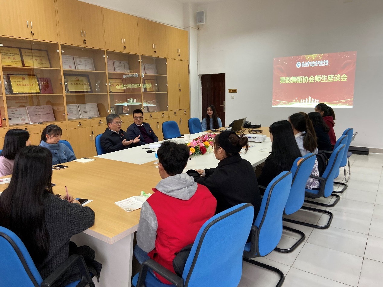 2019年12月19日,我校舞韻舞蹈協(xié)會召開社團專題會議,對2019年社團工作情況進行總結,并召開座談會,對未來發(fā)展進行探討。學院黨委陳貞健副校長、健康管理系艾松軍書記、舞韻舞蹈社團指導老師吳若云、舞韻舞蹈社團干事代表及19屆社團代表參加了會議。