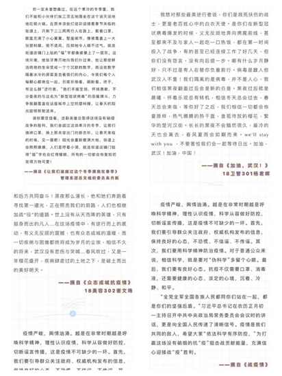 2020年的二月比任何時候都需要愛和希望,管理系學(xué)子們的聲聲加油,響應(yīng)著他們同武漢共同抗“疫”的決心。黑夜過后,總能看見最美的太陽;冬日已去,我們在閩衛(wèi)和你一起期待。我們從未像現(xiàn)在般感受彼此的牽掛,正如白巖松老師所說“隔離病毒但不隔離愛,因為愛是橋梁”管理系學(xué)子們積極成為抗“疫”一份子帶著他們的祝福和努力,給予武漢最大的支持和鼓勵。