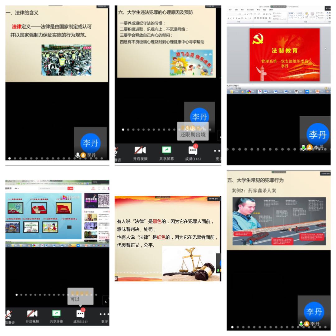 為增強我系學子法治觀念,規(guī)范自身行為準則,營造文明、和諧、遵紀守法的校園環(huán)境。管理系黨總支組織委員李丹老師于2020年3月23日下午通過網(wǎng)絡(luò)授課形式,開展以《法制教育》為主題的分黨校培訓課程。旨在通過此次課程,引導(dǎo)培訓班全體學員遵法學法守法,自覺運用法治思維與法治方式,提高依法辦事能力,形成依法守法用法的良好風尚。