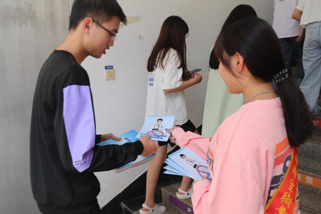 圖5.志愿者發(fā)放宣傳冊