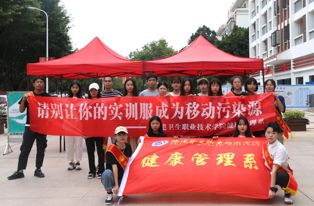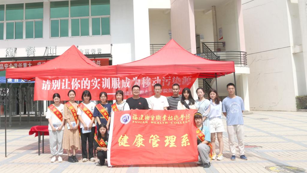 醫(yī)護人員的實訓(xùn)服是職業(yè)的象征,代表著生命的尊嚴(yán)和醫(yī)學(xué)的圣潔,是醫(yī)學(xué)職業(yè)倫理教育的良好載體,它具有切斷傳播途徑作用,也是防止交叉感染重要屏障,但是如果不正確處理,可能會成為危害人體的來源。2020年10月5日健康管理系第一黨支部聯(lián)合系團總支開展以“請別讓你的實訓(xùn)服成為移動污染源”為主題的衛(wèi)生安全宣傳教育活動,學(xué)院黨委委員、副院長陳貞健指導(dǎo)并參加此次活動。
