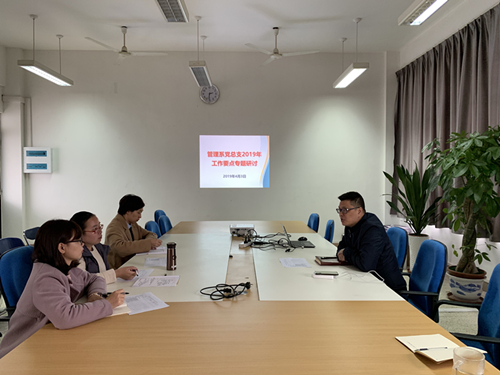 艾松軍同志從學(xué)懂弄通指導(dǎo)思想、強(qiáng)化責(zé)任擔(dān)當(dāng)、正風(fēng)肅紀(jì)、扎實(shí)政治工作和維護(hù)校園安全五個方向?yàn)榇蠹医庾x了學(xué)校2019年的工作要點(diǎn),強(qiáng)調(diào)了黨建工作規(guī)劃和落實(shí)的重要性。要將學(xué)校工作要點(diǎn)作為管理系黨總支及支部工作2019年的行動綱領(lǐng),作為指導(dǎo)工作推進(jìn)的任務(wù)目標(biāo)、工作思路,需要圍繞要點(diǎn)細(xì)化各支部的工作計(jì)劃,狠抓貫徹落實(shí)。而各位委員也紛紛結(jié)合工作任務(wù)分解表,對各個細(xì)項(xiàng)的具體推進(jìn)措施提出了自己的見解和補(bǔ)充。