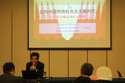 會議還邀請省委黨校行政學(xué)院教授林建華做了題為《邁向中國特色社會主義新時(shí)代-深入學(xué)習(xí)貫徹黨的十九大精神》專題講座。林建華教授從歷史成就、重大判斷、歷史使命與“四個偉大”、重大思想、基本方略等方面,對學(xué)習(xí)中共十九大精神進(jìn)行了深入淺出的解讀輔導(dǎo)。