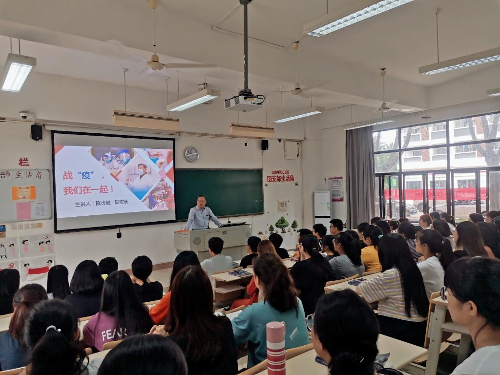 9月22日上午,學(xué)院領(lǐng)導(dǎo)在教學(xué)樓115為學(xué)生講授返校第一課《戰(zhàn)疫,我們在一起》。本次返校第一課由黨委委員、副院長陳貞健主講,管理系2019級健康管理專業(yè)學(xué)生參加現(xiàn)場授課。
