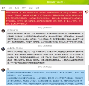 2020年10月15日,管理系第二黨支部全體黨員利用網(wǎng)絡(luò)資源學(xué)習(xí)四史中的《新中國(guó)史》。學(xué)習(xí)完畢,黨員們紛紛發(fā)表自己的心得體會(huì)。