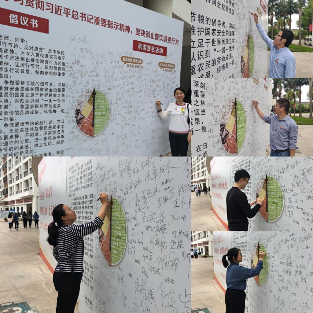 珍惜糧食,光盤行動(dòng)我踐行。師生積極響應(yīng)習(xí)近平總書記對(duì)制止餐飲浪費(fèi)行為重要指示精神倡議,簽名承諾厲行節(jié)約珍惜糧食,用實(shí)際行動(dòng)踐行光盤。米粒雖小,尤見禮義廉恥;節(jié)儉事微,可助興國(guó)安邦,我們要樹立珍惜糧食的意識(shí),踐行愛惜糧食的理念。節(jié)約糧食,從我做起,從現(xiàn)在做起!