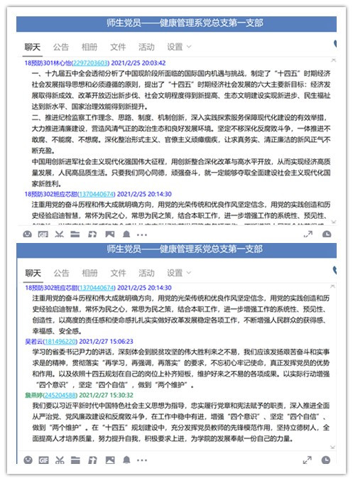2021年2月25日健康管理系黨總支第一支部全體黨員在線學(xué)習(xí)以下三個(gè)文件:1、福建省十三屆人大五次會(huì)議和省政協(xié)十二屆四次會(huì)議和省政府第一次全體會(huì)議精神2、《福建開展“再學(xué)習(xí)、再調(diào)研、再落實(shí)”活動(dòng)!尹力提出具體要求》3、中國共產(chǎn)黨福建省第十屆紀(jì)律檢查委員會(huì)第六次全體會(huì)議決議。學(xué)習(xí)完畢,黨員們積極發(fā)表觀點(diǎn)。