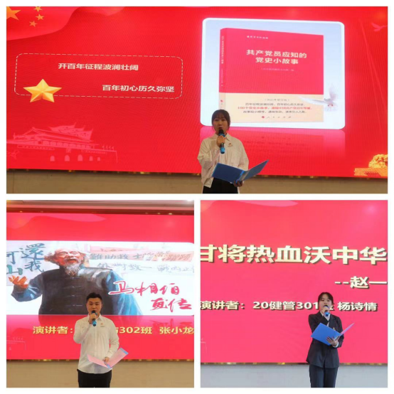 學(xué)黨史,黨員精神代代相傳,輩輩相承。儀式伊始,全體師生起立,奏唱國(guó)歌。黨校是培養(yǎng)忠于黨的事業(yè)合格接班人的地方。學(xué)黨史,悟心得,以傳承紅色基因——學(xué)員微講堂成員演講開始本次結(jié)業(yè)儀式第一個(gè)環(huán)節(jié)。19美容301班鐘侶欣同學(xué):“黨史小故事——周恩來(lái)訂立修養(yǎng)七則”;19預(yù)防302班張小龍同學(xué):“教育史篳路藍(lán)縷的先哲”;20健管301班楊詩(shī)情同學(xué):“甘于熱血沃中華”。三位同學(xué)通過(guò)不同的演講方式深情地述說(shuō)了一代又一代共產(chǎn)黨人不懈奮斗、勇敢逐夢(mèng)的壯麗史詩(shī),喚醒了在座無(wú)數(shù)學(xué)員心中的熱血與激情。
