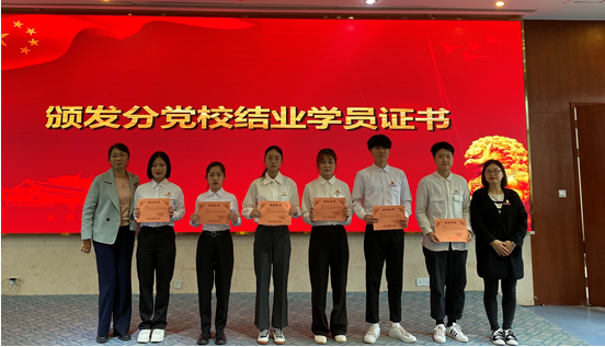 秉持初心,堅(jiān)守初心,錘煉初心。儀式的第二個(gè)環(huán)節(jié),系黨總支吳燕玲副書記宣讀健康管理系業(yè)余分黨校第七期結(jié)業(yè)學(xué)生名單,本期學(xué)員代表上臺(tái)領(lǐng)取結(jié)業(yè)證書,健康管理系黨總支第一支部吳明書記、第二支部馮瑞華書記為學(xué)生代表頒發(fā)結(jié)業(yè)證書。