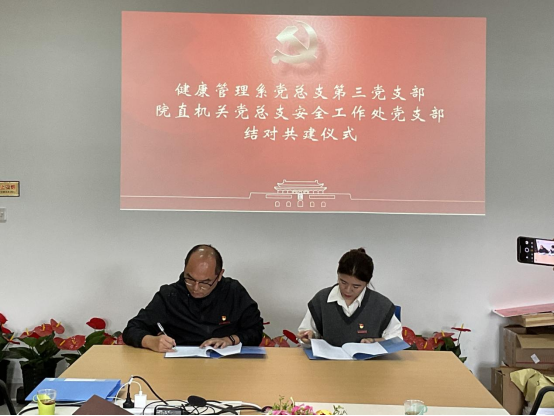 為進一步探索基層黨建工作新模式, 努力形成黨組織之間優(yōu)勢互補、協(xié)同發(fā)展的黨建新格局,提升黨支部戰(zhàn)斗堡壘作用。11月8日,健康管理系黨總支第三支部與院直機關(guān)黨總支安全工作處黨支部于圖書館五樓會議室舉行支部結(jié)對共建簽約儀式。健康管理系黨總支書記黃曦、健康管理系黨總支副書記吳燕玲、安全工作處副處長黃興宇以及雙方共建支部的黨員代表參加了共建儀式。儀式由王開曄同志主持。