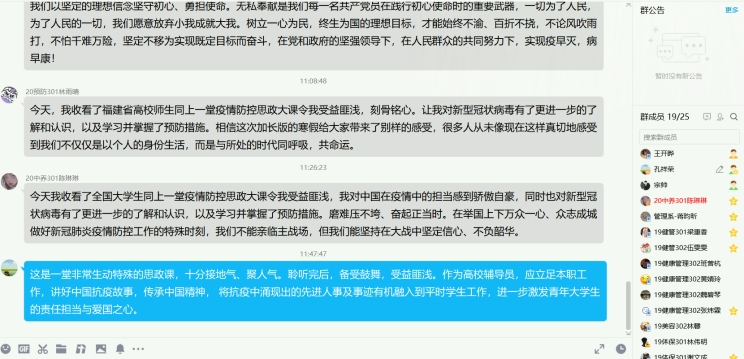 本次思政大課既有學(xué)理支撐和理論蘊(yùn)含,又緊密結(jié)合防疫一線感人事跡,引發(fā)了上課師生的強(qiáng)烈共鳴。直播課程結(jié)束后,本支部師生黨員反響熱烈。