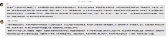 學(xué)生預(yù)備黨員王麗婷同志表示: 宣傳工作是黨的一項極為重要的工作,是黨領(lǐng)導(dǎo)人民不斷奪取革命、建設(shè)、改革勝利的優(yōu)良傳統(tǒng)和政治優(yōu)勢。作為青年大學(xué)生,我們要從百年黨史中汲取智慧和力量,跟隨黨的步伐,投身宣傳工作中去。