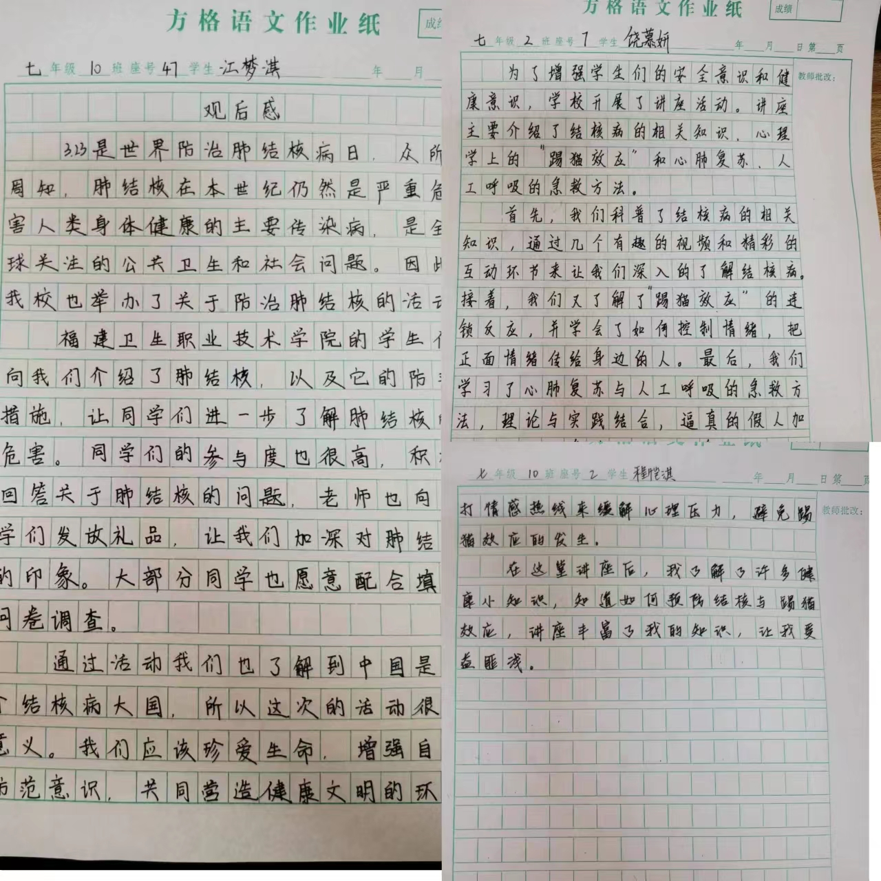 閩衛(wèi)院結(jié)核病防治宣傳志愿者林雅婷同學(xué)通過視頻和問答的方式講解了關(guān)于結(jié)核病防治知識(shí)。同學(xué)們也在互動(dòng)問答中知曉了正確的結(jié)核病知識(shí)。有效提高了在校學(xué)生結(jié)核病知識(shí)知曉率。講座后志愿者們還進(jìn)行了結(jié)核病防治知識(shí)問卷調(diào)查,評(píng)價(jià)活動(dòng)效果,為做好結(jié)核病宣教工作提供依據(jù)。