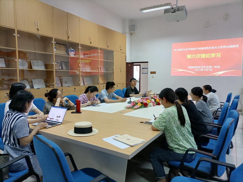 為深入開(kāi)展學(xué)習(xí)貫徹習(xí)近平新時(shí)代中國(guó)特色社會(huì)主義思想主題教育走深走實(shí),堅(jiān)持讀原著學(xué)原文悟原理,7月7日,健康管理系黨總支第一支部于健康管理系會(huì)議室召開(kāi)第六次專(zhuān)題理論學(xué)習(xí)活動(dòng)。
