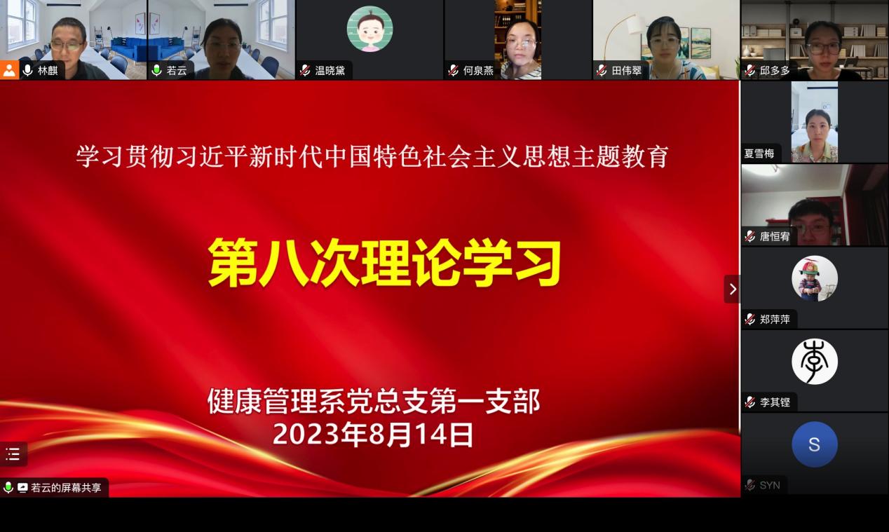 為深入開展學(xué)習(xí)貫徹習(xí)近平新時代中國特色社會主義思想主題教育走深走實,堅持讀原著學(xué)原文悟原理,8月14日,健康管理系黨總支第一支部以線上會議形式召開第八次專題理論學(xué)習(xí)活動。