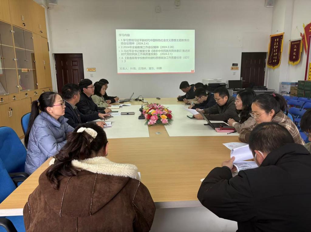 2024年2月28日,學(xué)院理論學(xué)習(xí)中心組在505會議室舉行了2024年度第二次集體學(xué)習(xí)會。重點(diǎn)學(xué)習(xí)了以下幾項(xiàng)重要精神和內(nèi)容,2024年全省教育工作會議精神、學(xué)習(xí)貫徹習(xí)近平新時(shí)代中國特色社會主義思想主題教育總結(jié)會議精神、習(xí)近平總書記在二十屆中央紀(jì)委三次全會上的重要講話精神、《習(xí)近平關(guān)于全面依法治國論述摘編》。