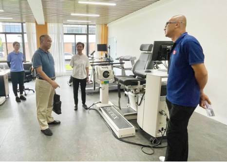 雙方在健康學(xué)院體適能訓(xùn)練中心舉行交流座談。張蔚偉副院長對我校一行到訪表示熱烈歡迎,并介紹了健康學(xué)院的運(yùn)動康復(fù)專業(yè)人才培養(yǎng)、招生情況及體適能訓(xùn)練中心建設(shè)特色亮點(diǎn)等情況。座談會后,健康學(xué)院康復(fù)醫(yī)學(xué)系副主任孫鐳、專任教師張靈婕帶領(lǐng)參觀人體運(yùn)動氣體代謝分析儀、等速肌力訓(xùn)練儀等實(shí)訓(xùn)設(shè)備。