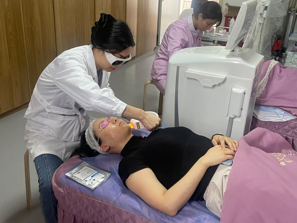 5月23日,在“5.25國(guó)際愛(ài)膚日”即將到來(lái)之際,本著為教職工服務(wù)的宗旨,我院醫(yī)學(xué)美容專業(yè)全體教師攜美容創(chuàng)新創(chuàng)業(yè)團(tuán)隊(duì)成員聯(lián)合校工會(huì)、婦委會(huì)共同舉辦了一場(chǎng)面向全校教師的公益活動(dòng)?;顒?dòng)項(xiàng)目有專業(yè)皮膚檢測(cè)(VISIA)、光子嫩膚、紅藍(lán)光照射、舒敏護(hù)膚體驗(yàn)和激光點(diǎn)疣等共5類,吸引了眾多老師前來(lái)體驗(yàn),收到一致好評(píng)。
