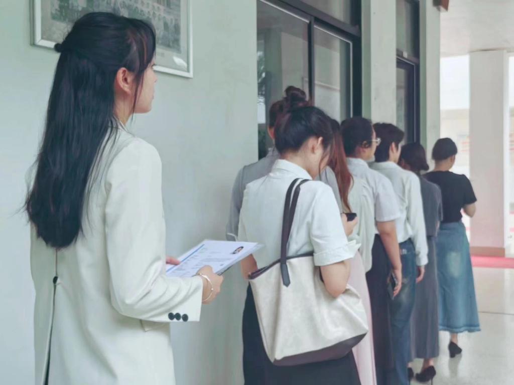 在教學(xué)樓舉辦醫(yī)學(xué)美容技術(shù)專業(yè)雙選會(huì),活動(dòng)吸引了眾多馬上要面臨實(shí)習(xí)的2022級(jí)醫(yī)學(xué)美容技術(shù)專業(yè)的同學(xué)參加。本次活動(dòng)邀請(qǐng)了廈門美萊、愛美爾、東方美、福州華窈、臺(tái)江醫(yī)院等各大單位的HR們來校為學(xué)生進(jìn)行職業(yè)規(guī)劃指導(dǎo)和面試活動(dòng)。活動(dòng)當(dāng)天,HR們受邀為即將要下實(shí)習(xí)點(diǎn)的2022級(jí)醫(yī)學(xué)美容技術(shù)專業(yè)學(xué)生宣講企業(yè)文化、崗位內(nèi)容、工作環(huán)境、發(fā)展前景等,企業(yè)HR們根據(jù)自身經(jīng)驗(yàn)對(duì)學(xué)生進(jìn)行職業(yè)規(guī)劃指導(dǎo),并提供崗位和現(xiàn)場(chǎng)面試活動(dòng),學(xué)生根據(jù)自己的專業(yè)特點(diǎn)和興趣選擇自己喜歡的就業(yè)單位,企業(yè)對(duì)學(xué)生進(jìn)行了現(xiàn)場(chǎng)面試,進(jìn)行了雙向選擇。雙選會(huì)現(xiàn)場(chǎng),同學(xué)們朝氣蓬勃信心滿滿,積極地展現(xiàn)著自己的優(yōu)勢(shì)與實(shí)力。